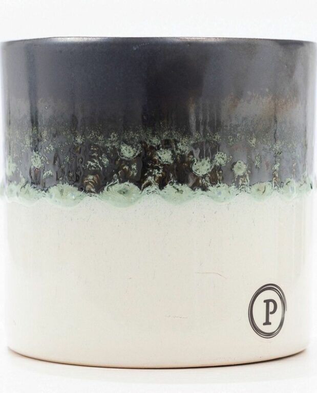 Description : Cache-Pot céramique blanc écru et vert