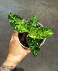 La Dieffenbachia White Etna se distingue par son feuillage graphique et raffinement. Ses larges feuilles, ovales et pointues, sont un véritable tableau naturel. Leur vert profond est magnifiquement rehaussé de marbrures crème et blanches, qui semblent avoir été peintes à la main. Chaque feuille capte la lumière et donne à votre intérieur une touche de fraîcheur et de sophistication. Placée près d’une fenêtre ou dans un coin lumineux, cette plante deviendra la pièce-maîtresse de votre décoration.